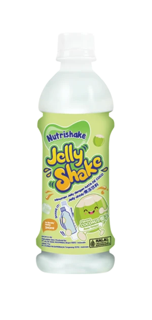 Nutrijell Jelly Shake is a fruit-flavored jelly drink combined with Nata de Coco, which is packaged in a ready-to-drink plastic bottle. Not only can eliminate thirst instantly, this drink is also filling because it contains fiber which is good for digestion.
